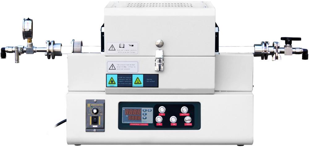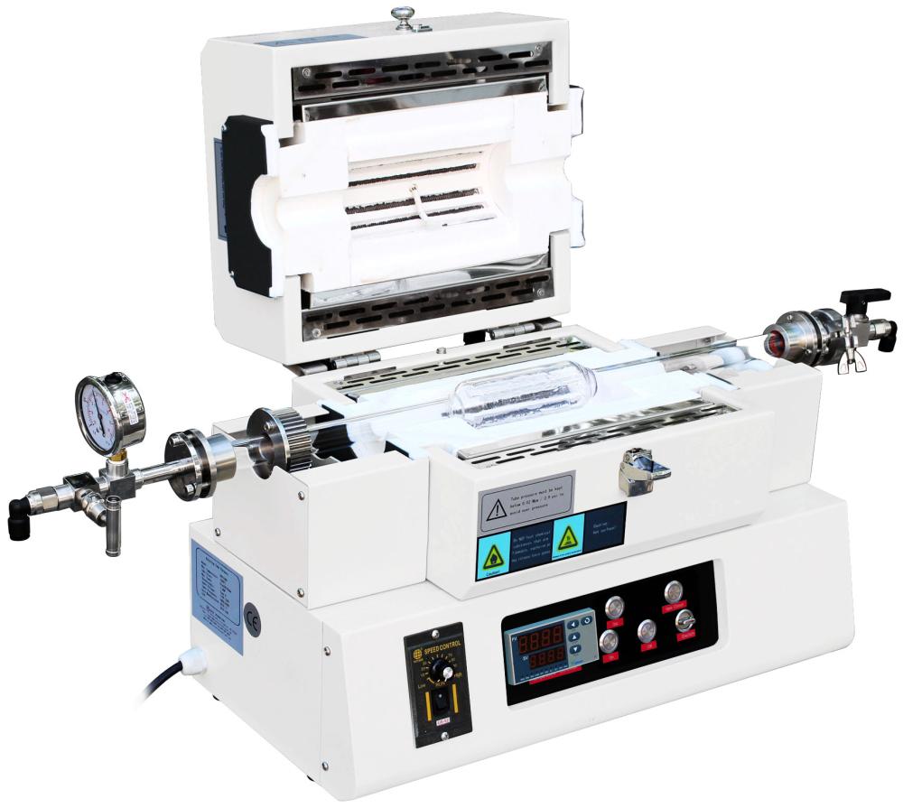 RTF1200 25mm OD compact top-open rotary tube furnaces feature spiral wire coils embedded in Mitsubishi (Japan) alumina fiber insulation. A double walled steel internal housing helps minimize heat loss to exterior surface. Furnace operation is controlled by a multi-segment digital controller. Features Compact, portable and lightweight design.