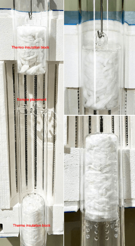 VTF1200 50x600mm (ODxlength) portable vertical tube furnaces feature spiral wire coils embedded in Mitsubishi (Japan) alumina fiber insulation. A double walled steel internal housing helps minimize heat loss to exterior surface. Furnace operation is controlled by a 30-segment digital controller. All our furnaces are CE compliant.
