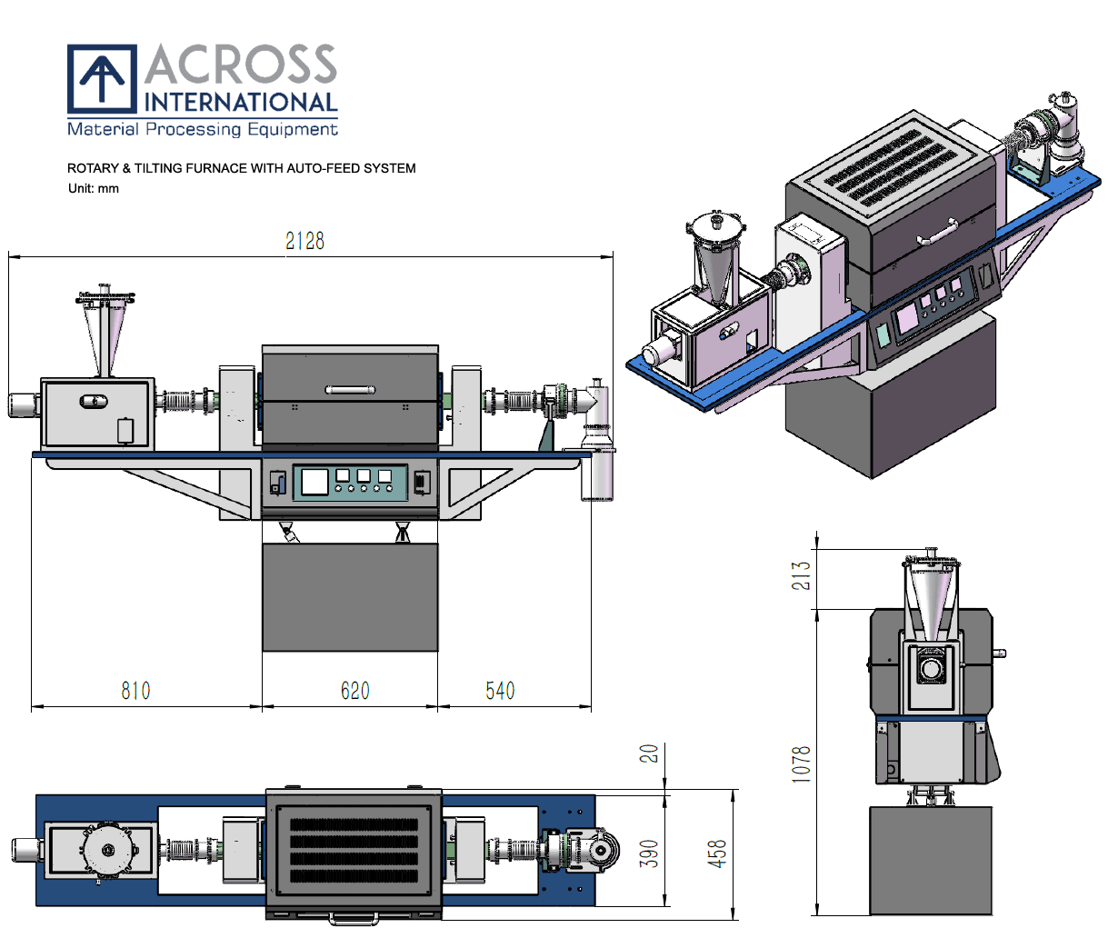 1200C Rotary & Tilting 1-3 Zone Tube Furnace with Custom Feeding System (Call for Quote)