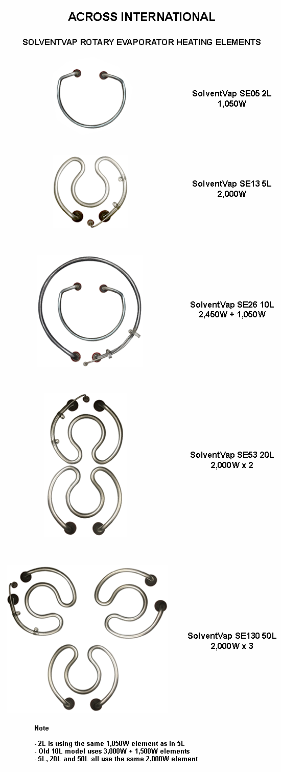 220V 2,450 watts heating element for Across International SolventVap 10L rotary evaporators.Comes with 4 Installed and 2 extra seals. Attention! Heating elements do not come with thermocouple which is sold separately.