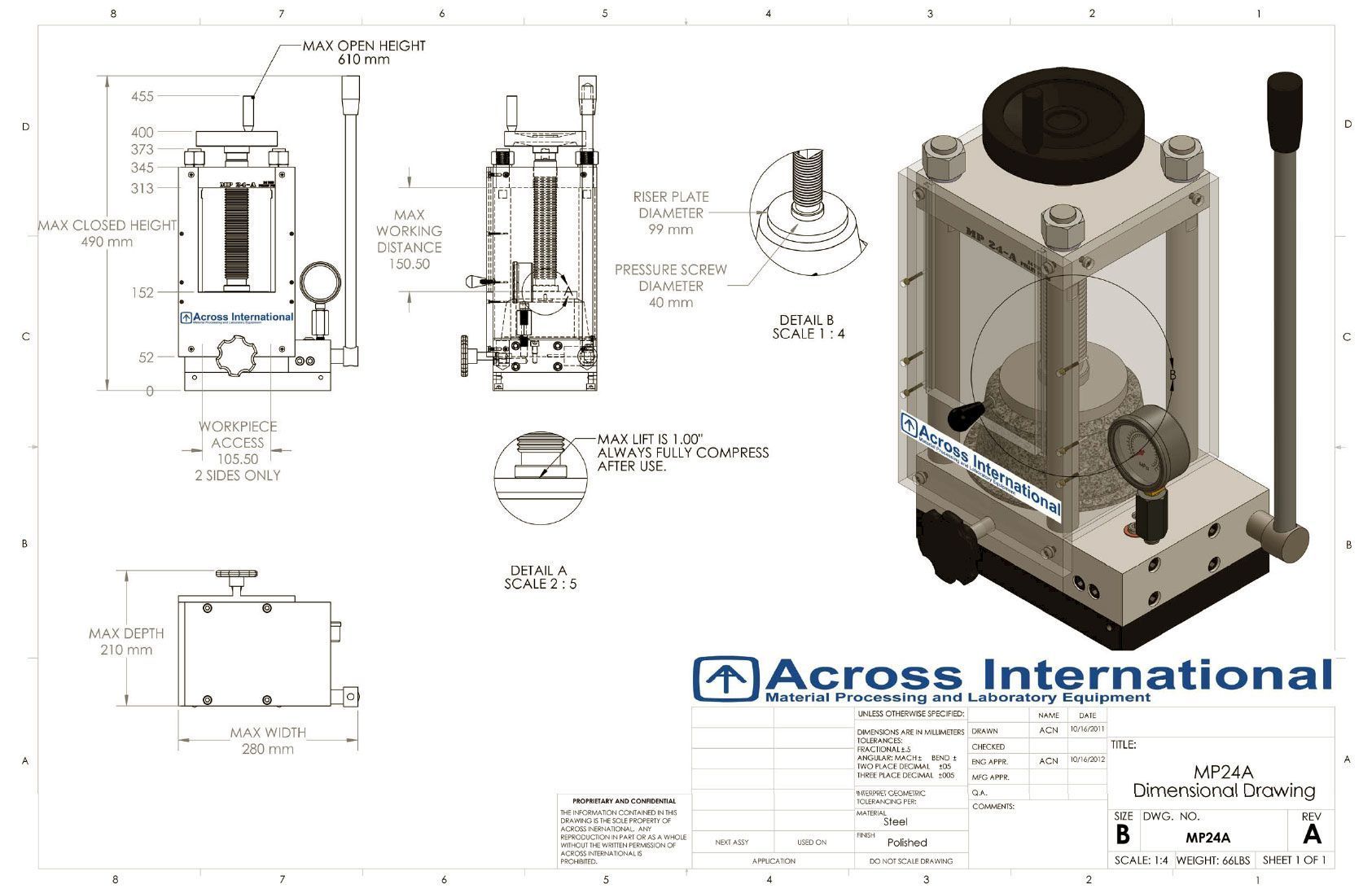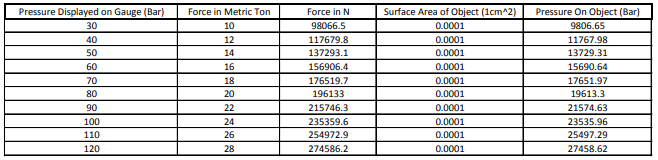 Maximum pressure   24 metric tons (52,910 Lb)