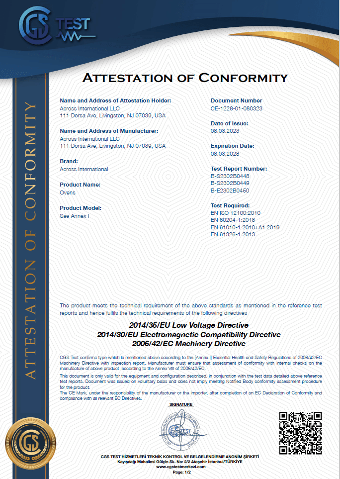 IMPORTANT! NEVER LEAVE YOUR OVEN UNATTENDED WHILE OPERATING. Across International is not responsible for any loss of material inside of the oven.