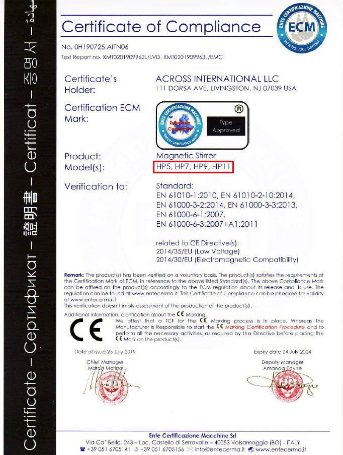 Certification ETL tested to UL and CSA standards (optional), CE (standard)