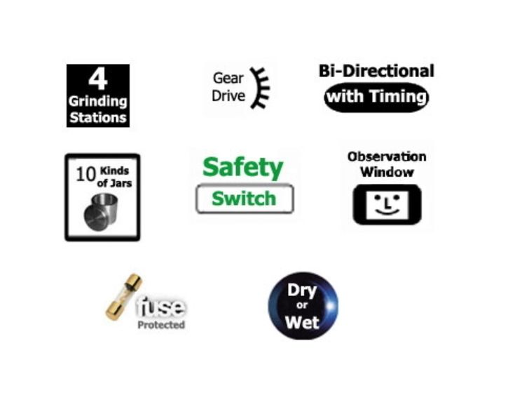 A timer controls running time from 1 to 999 minutes; it also controls jars’ direction of rotation and intervals. We offer various sizes of grinding jars and grinding balls in different materials in our ball mill accessories section. Depending on your application, the material your grinding media is made from may be imperative to achieving accurate results.
