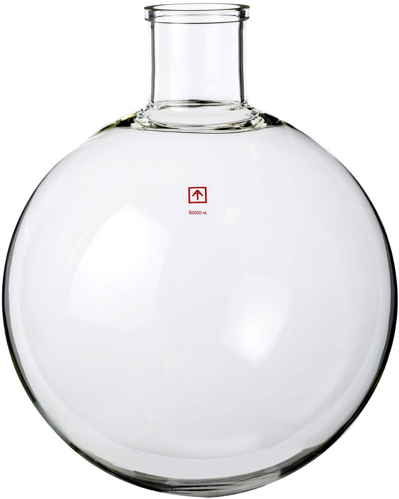 Ai 50L large-neck, heavy wall, high quality round evaporation flask for SolventVap SE130 50L rotary evaporators. Large-neck design allowing you to reach inside the flask for easy cleaning.