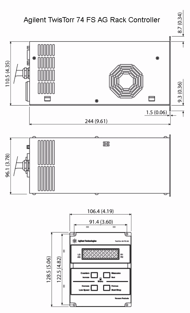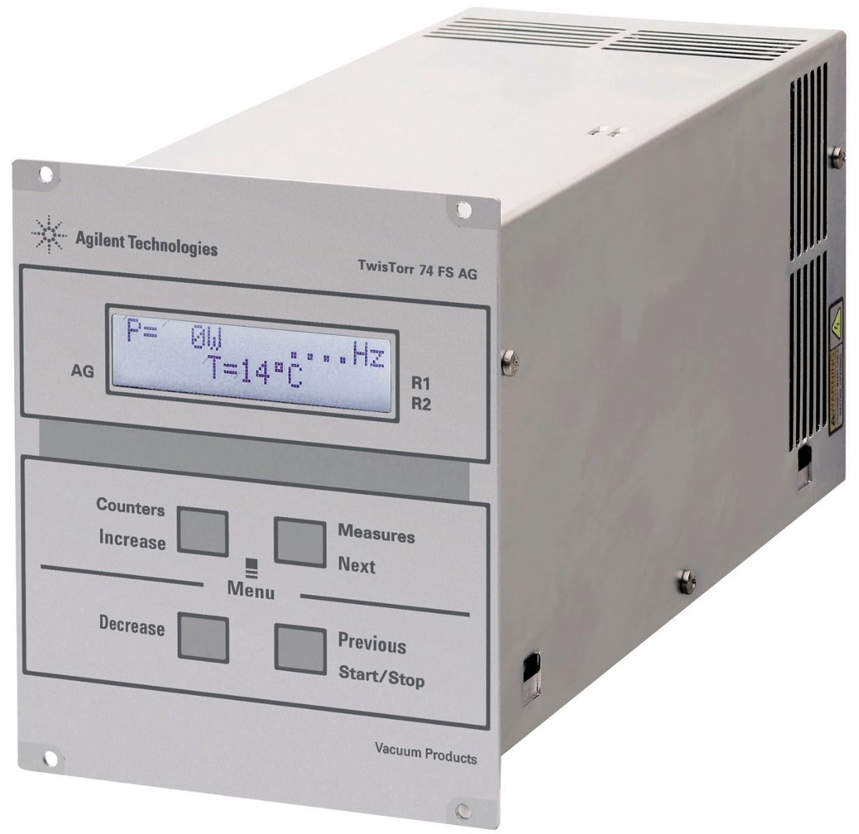 The Agilent TwisTorr 74 AG rack controller is a remote control unit for the TwistTorr 74 FS turbo pump. This drive unit adapts speed and power as required by gas flow, gas type, pressures, and other factors such as cooling. The controller can read active gauges and remotely control accessories such as vent valves and the air cooling fan from 100 m away.