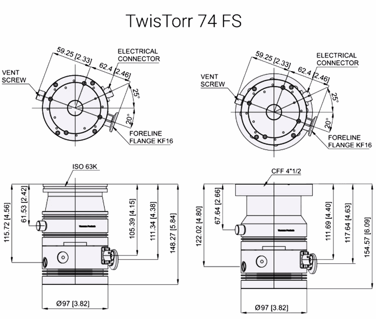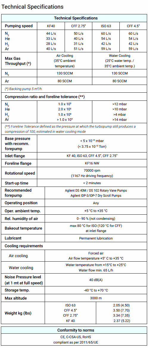 The Agilent TwisTorr 74 FS is a small, 70 L/s turbo pump for research and development, UHV systems, nuclear research, and electron microscopy. It delivers high vacuum performance thanks to the synergy between turbo technology and innovative TwisTorr drag stages.