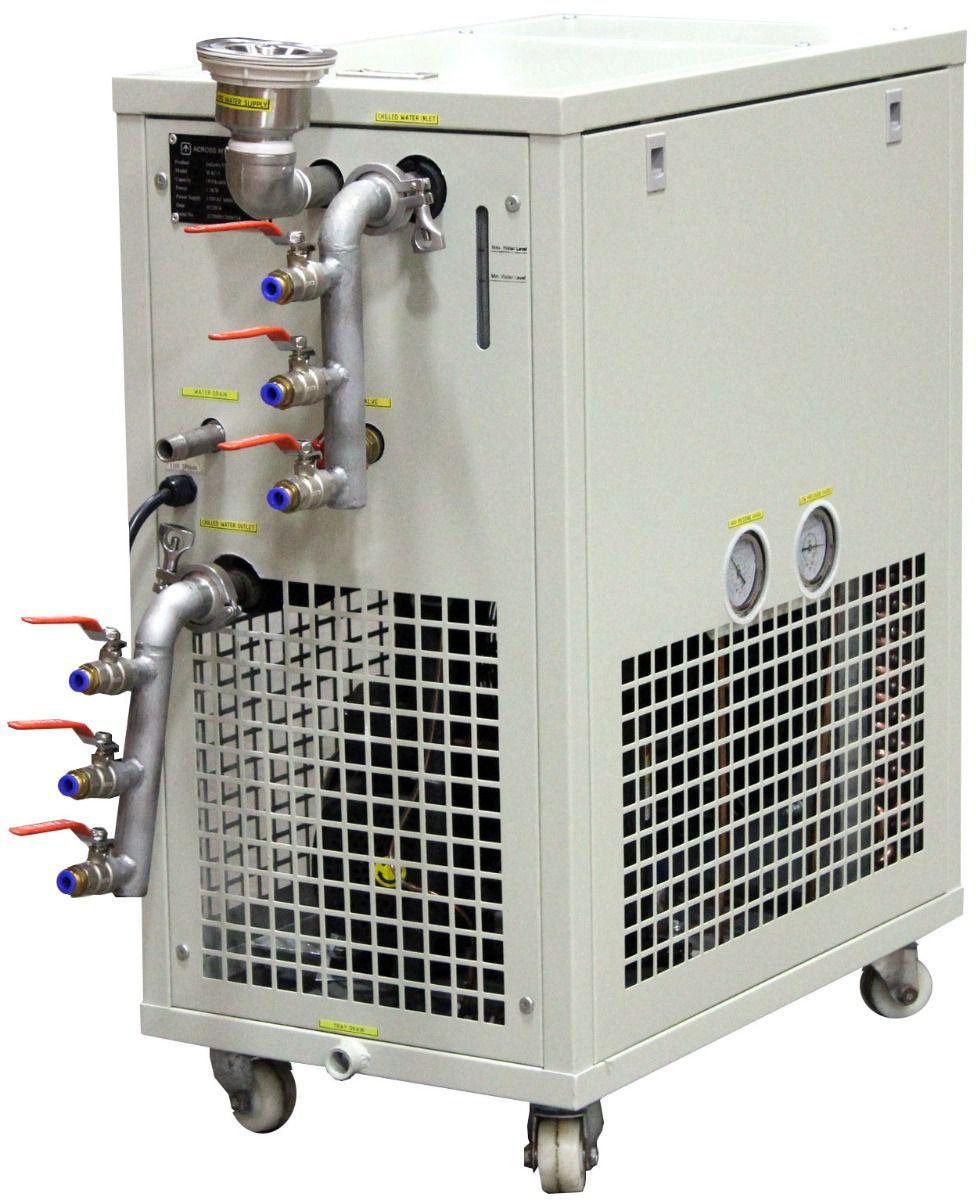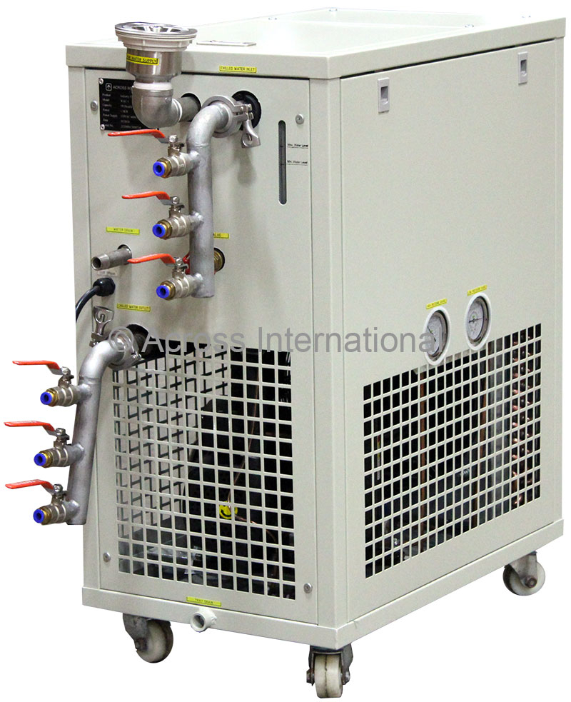 Ai WAC-1 digital temperature controlled recirculating water chiller with built-in swivel casters, recommended for our IH series induction heaters (see models below). These chillers have built-in stainless steel tank and water pump for durability and rust-free operation. two sets of water manifolds included for immediate use.