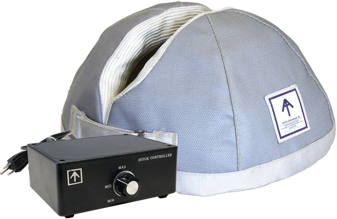 The Ai ultra-thick 400C rated heating tops will keep your distillation setup at the peak of its performance, they will help prevent vapor condensation in the upper half of a flask, at the same time, protect the flask, the solutions, and the lab from drafts, which would disturb the reflux ration during fractionation, from flying glass of flask implosions in high vacuum distillations, from falling objects; and from thermal strain between top and lower half of flask during high-temp operations.