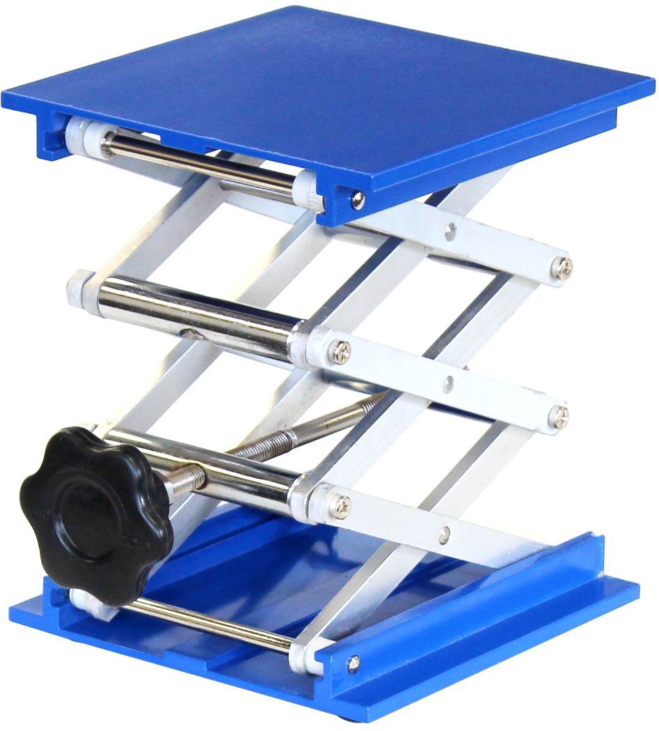 Across International aluminum laboratory scissor jack with cushioned feet. Platform size: 6 x 6″ Minimum height: 3″ Maximum height: 15.25″ Maximum load: 80s Bottom of the Item