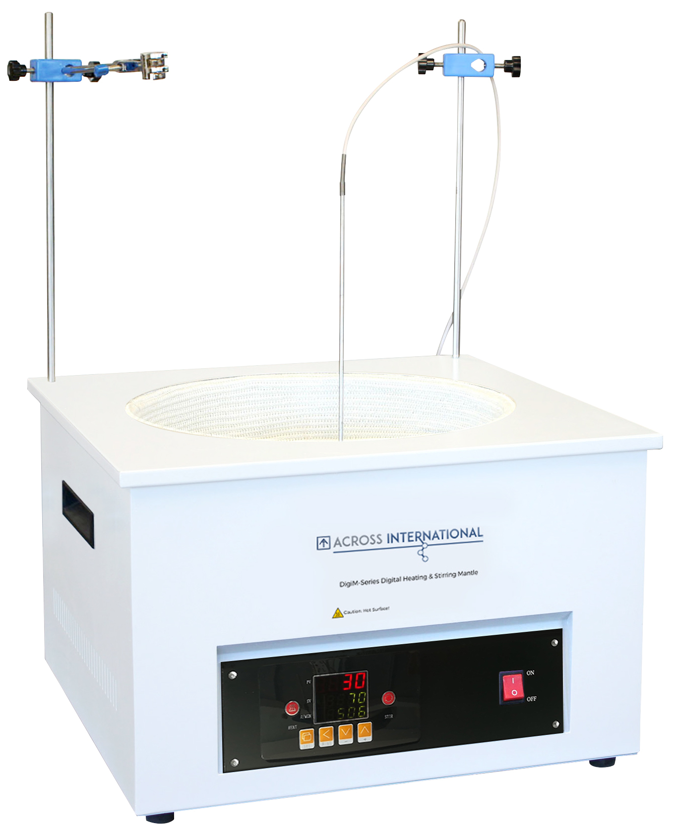 Across International heating and stirring mantles come standard with digital display for the most accurate control. The large display interface makes it easy to quickly and precisely adjust temperature and rotation speeds.