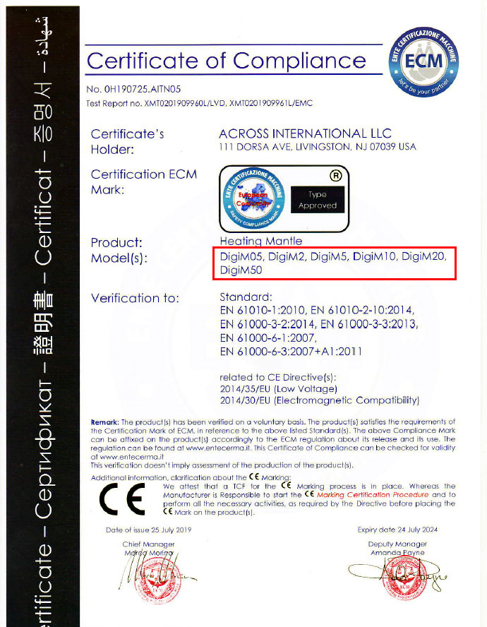 The DigiM mantle is equipped with two sets of thermocouples for proper temperature and speed detection. The heating jacket is pre-treated before shipment, which ensures that no smoke or odors (caused by heat) are released into your work environment.