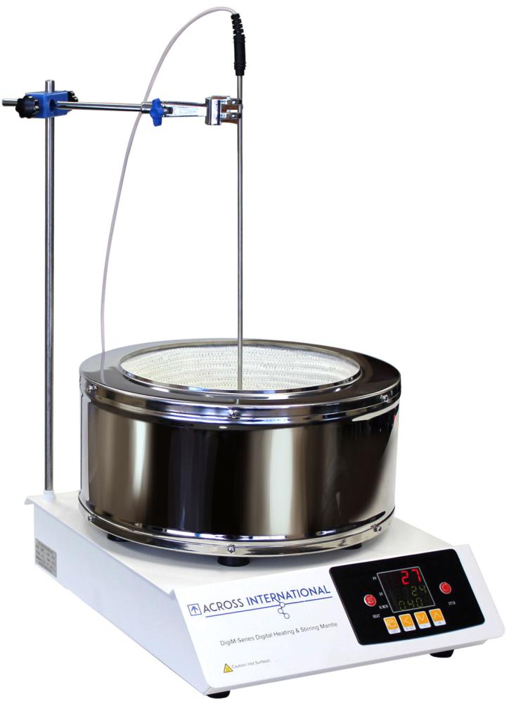 Across International heating and stirring mantles come standard with digital display for the most accurate control. The large display interface makes it easy to quickly and precisely adjust temperature and rotation speeds.