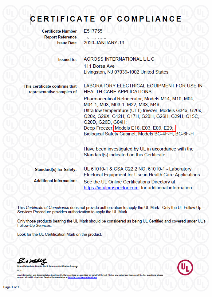 The E29 is Energy Star and UL certified and is great for storage of Covid-19 vaccines, DNA, RNA, virus samples, organs and serum.