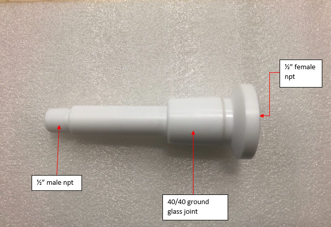 This part is a spray ball lance, that will sit in a 40/40 joint for the Across International glass reactor. It extends into the reactor, and on its end a cleaning nozzle can be attached for reactor clean in place procedures. It is recommended to use R.PVDF.Nozzle.10-200.