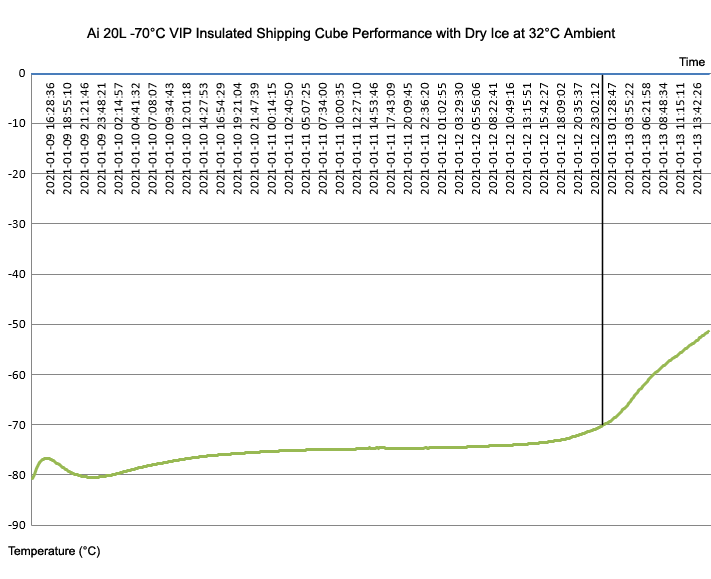 The Ai -70C ultra-cold reusable shipping cube is used to safely ship products with unique temperature constraints. No liquid coolant used; Vacuum Insulated Panel (VIP) solid insulation maintains the integrity of your products within their desired temperature environment. These cubes are ideal for reducing shipping costs or for circumstances in which unexpected delays may occur.