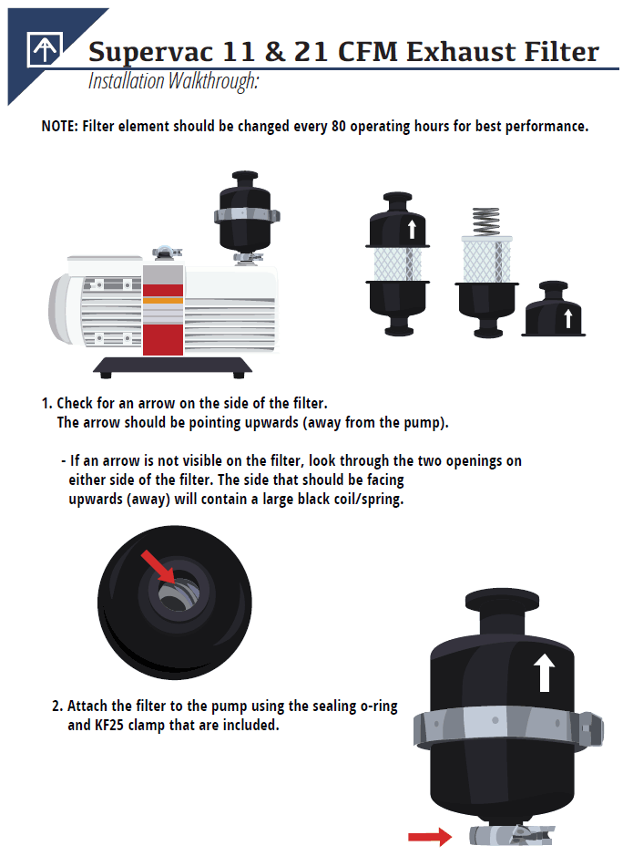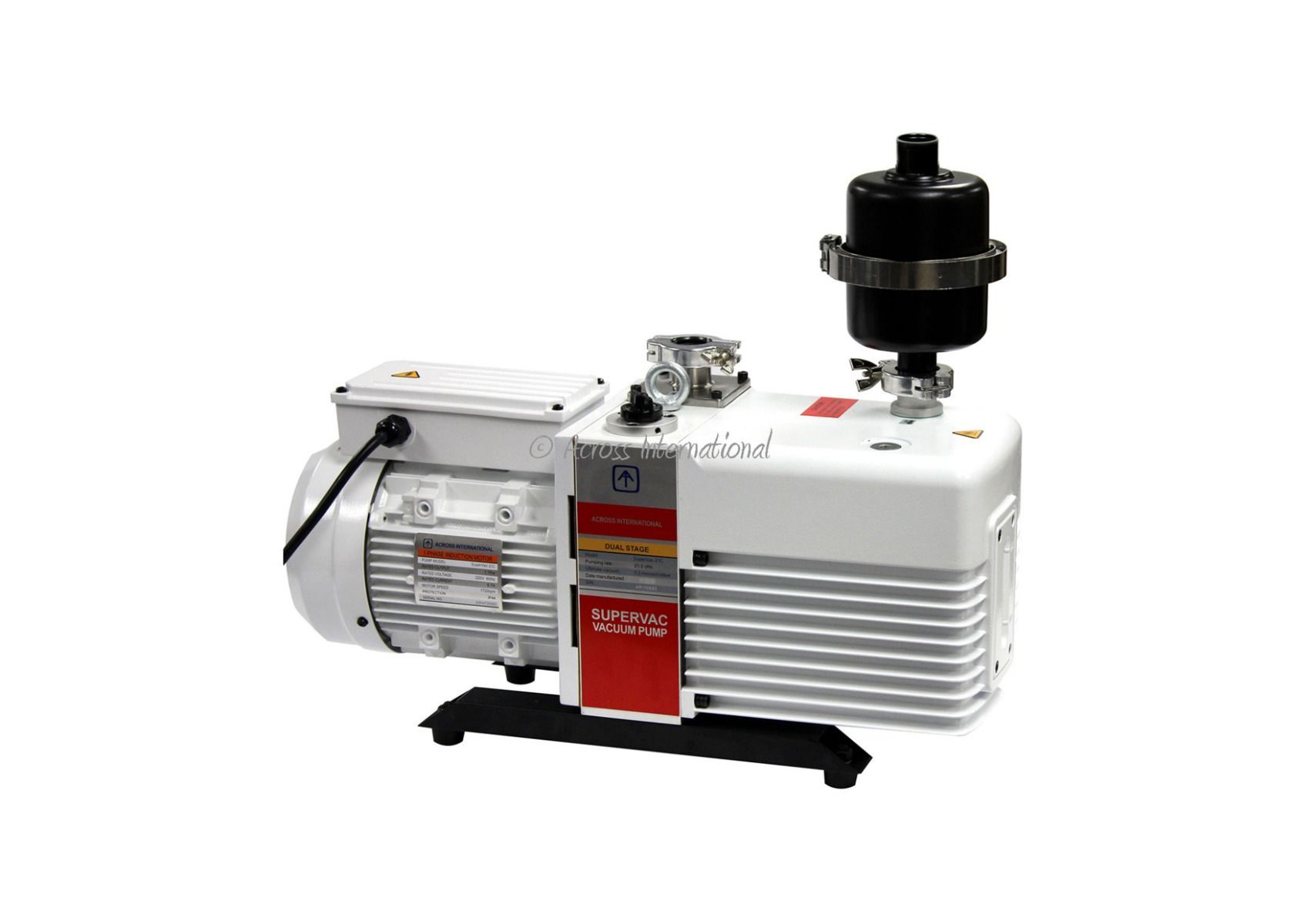 The new corrosion resistant Ai SuperVac 21 cfm commercial grade vacuum pumps are now UL certified (115V model), this certification is required by many municipalities, and it also provides a higher standard of equipment safety and lifespan. These pumps are designed for reliable long time continuous operation, they will take your equipment’s vacuum down to 0.3 micron in minutes. Comes standard with all necessary fittings and a high capacity exhaust oil mist filter which also returns trapped pump oil back to the pump and makes the pump quieter to run.