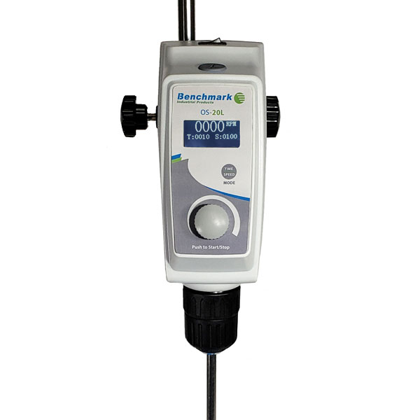 Benchmark’s Overhead Stirrers feature high torque and advanced digital microprocessor control for smooth mixing of low and medium viscosity samples. Speed and run time are accurately set and monitored on the LCD screen. Both the 20L and 40L capacity models are supplied with a 4 arm stainless steel propeller, additional steel and Teflon accessories are available. A feed-through chuck holds accessory shafts firmly in place and is easily tightened and loosened without tools.