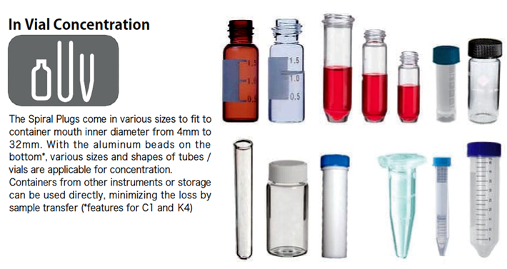Applications include concentrating samples after organic synthesis, solvent removal after NMR, concentrating samples after fractionation and purification. Ideal for research fields such as organic chemistry, material science, polymer chemistry, environmental analysis, biochemistry.
