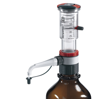 The seripettor ® pro is a bottletop dispenser designed to handle a wider range of liquids than the regular seripettor ® for customers who do not require all the features of the Dispensette ® . Like the regular seripettor ® , it features an easily-replaceable wiping seal dispensing cartridge, making it especially suitable for liquids that tend to form crystals.