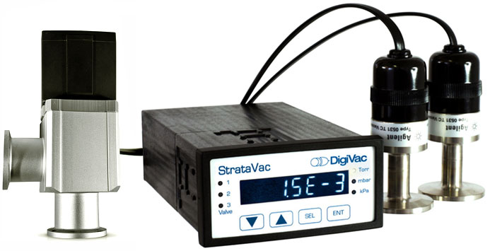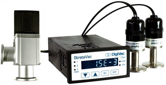 Having compatibility with capacitance manometers gives you another configuration to look for. With the use of a capacitance manometer that measures a specific pressure with more reliable accuracy than a thermal sensors, you can more easily control your system at a pressure that is suitable for your experiment. This pairing of the StrataVac and capacitance manometer is often utilized by those in labs doing research, as a calibration standard for other instruments, or as an in-house standard when performing tests. It seems that many in the vacuum field choose capacitance manometers whenever possible because it is isolated and particles cannot contaminate the sensor.