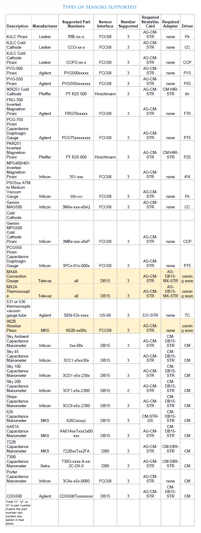| StrataVac card to drive Agilent 531, 536 and equivalent gauge tubes | 531-STR | 2 pcs |
