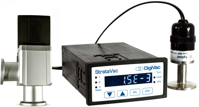 Having compatibility with capacitance manometers gives you another configuration to look for. With the use of a capacitance manometer that measures a specific pressure with more reliable accuracy than a thermal sensors, you can more easily control your system at a pressure that is suitable for your experiment. This pairing of the StrataVac and capacitance manometer is often utilized by those in labs doing research, as a calibration standard for other instruments, or as an in-house standard when performing tests. It seems that many in the vacuum field choose capacitance manometers whenever possible because it is isolated and particles cannot contaminate the sensor.