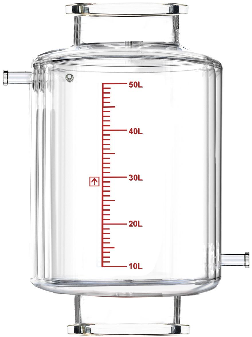Across International replacement double-jacketed 50 liter glass reactor vessel, specially made for Across International R50 series 50L jacketed glass filter reactors. Vessel mouth diameter : 10.5 inches Glass material: high borosilicate glass 3.3