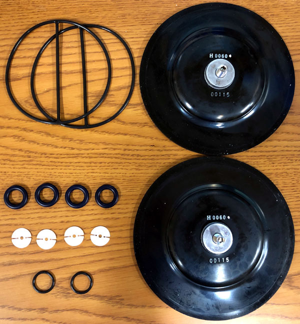 Dual-diaphragm rebuild kit for UDP6 6 CFM chemical duty diaphragm pumps.