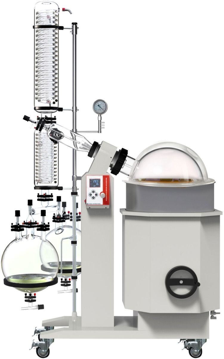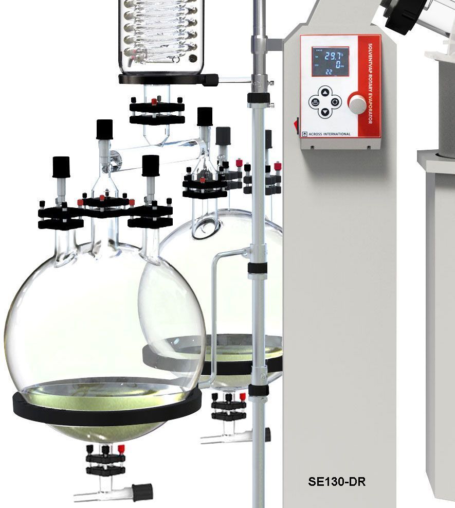 The new Ai dual 20L receiving flask kit allows you to switch between two receiving flasks, without interrupting your 50L rotary evaporator’s operation.