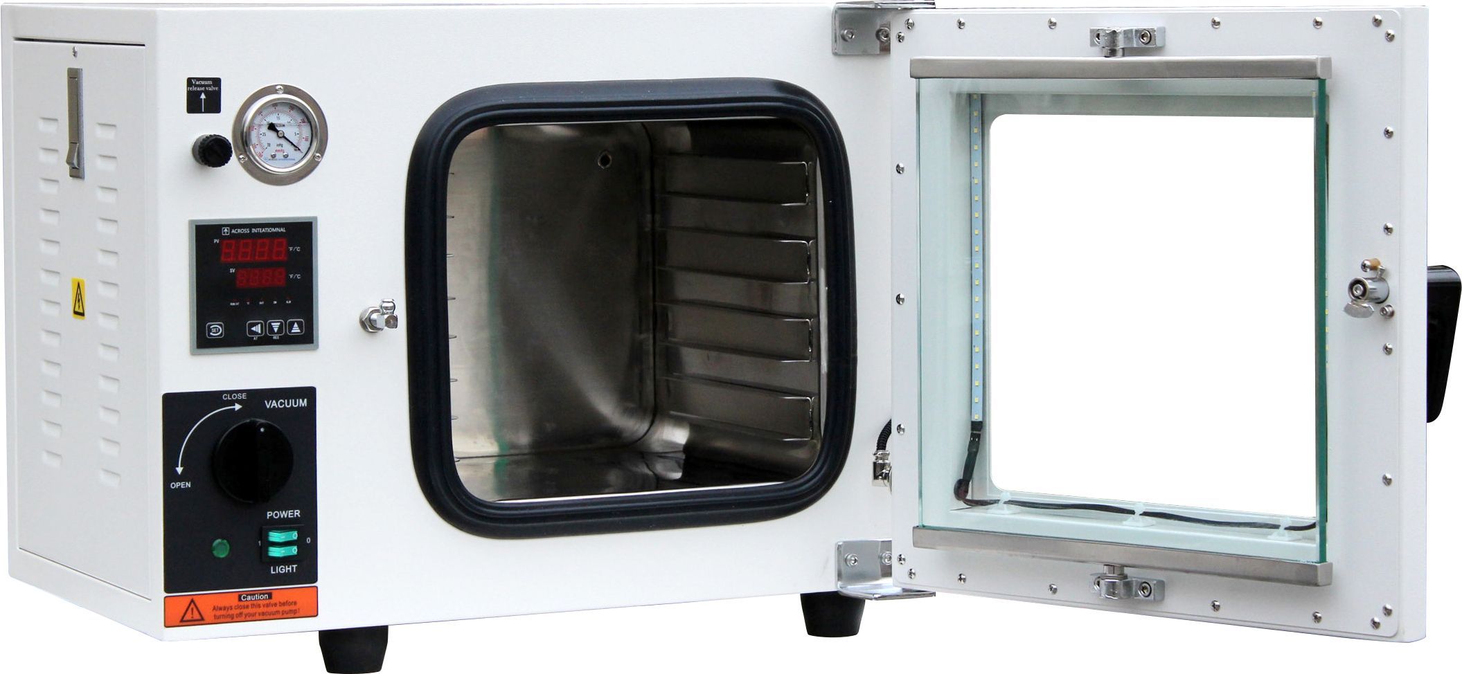 AT09e series digital desktop vacuum ovens feature a 0.9 cubic foot easy-to-clean stainless steel chamber with a large dual-layer tempered glass safety window and small footprint. These ovens can greatly reduce drying time by maintaining a consistent vacuum level within the chamber. Every one of our vacuum ovens goes through a 2-time 24-hour vacuum leak test, and is 100% quality controlled in New Jersey or Nevada before leaving our facilities.