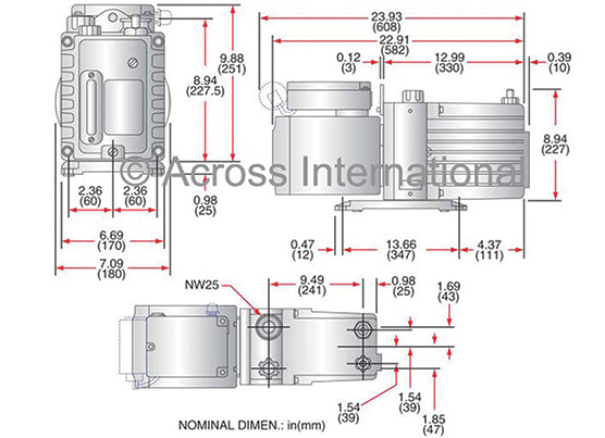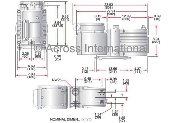 Supplied with: Ultragrade 19 oil, NW25 O-ring and centering ring, lifting plate. Fomblin must be purchased separately for PFPE pumps.