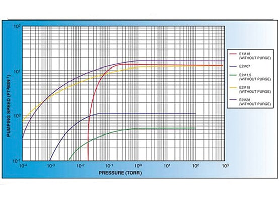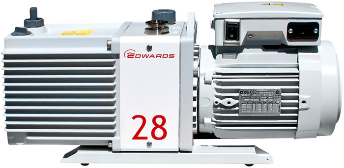 The EM range of oil-sealed rotary pumps – renowned for its high ultimate vacuum, rapid pumping speed, quiet operation and ability to handle vapour – has become the industry standard laboratory and light industrialapplications. The E2M28 pump is a two-stage, direct drive, sliding vane pump. The pump is oil sealed and designed for reliable, long-term operation in both laboratory and industrial environments. The pump is a freestanding unit with the drive provided through a flexible coupling by either a single-phase or three-phase (four-pole) motor.