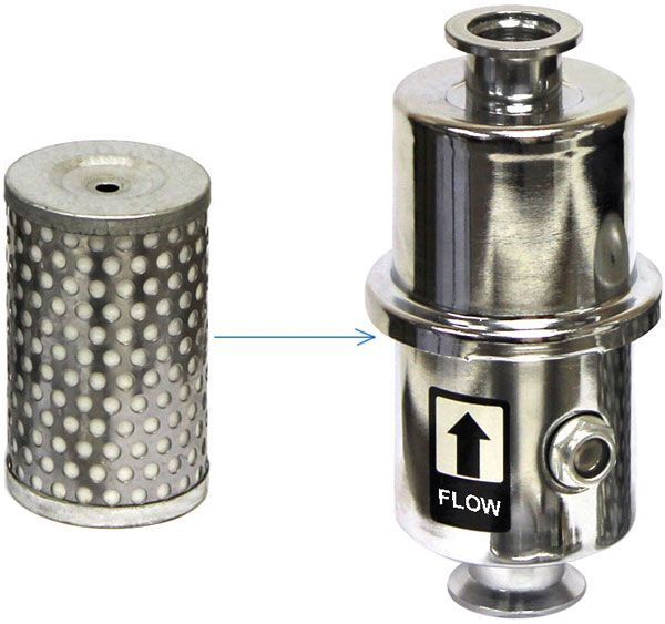 Filter element for the new Across International SMF-010 vacuum pump exhaust oil mist filter with KF25 inlet and outlet. 50% larger than its previous version, providing a faster pumping rate and longer element life cycle.