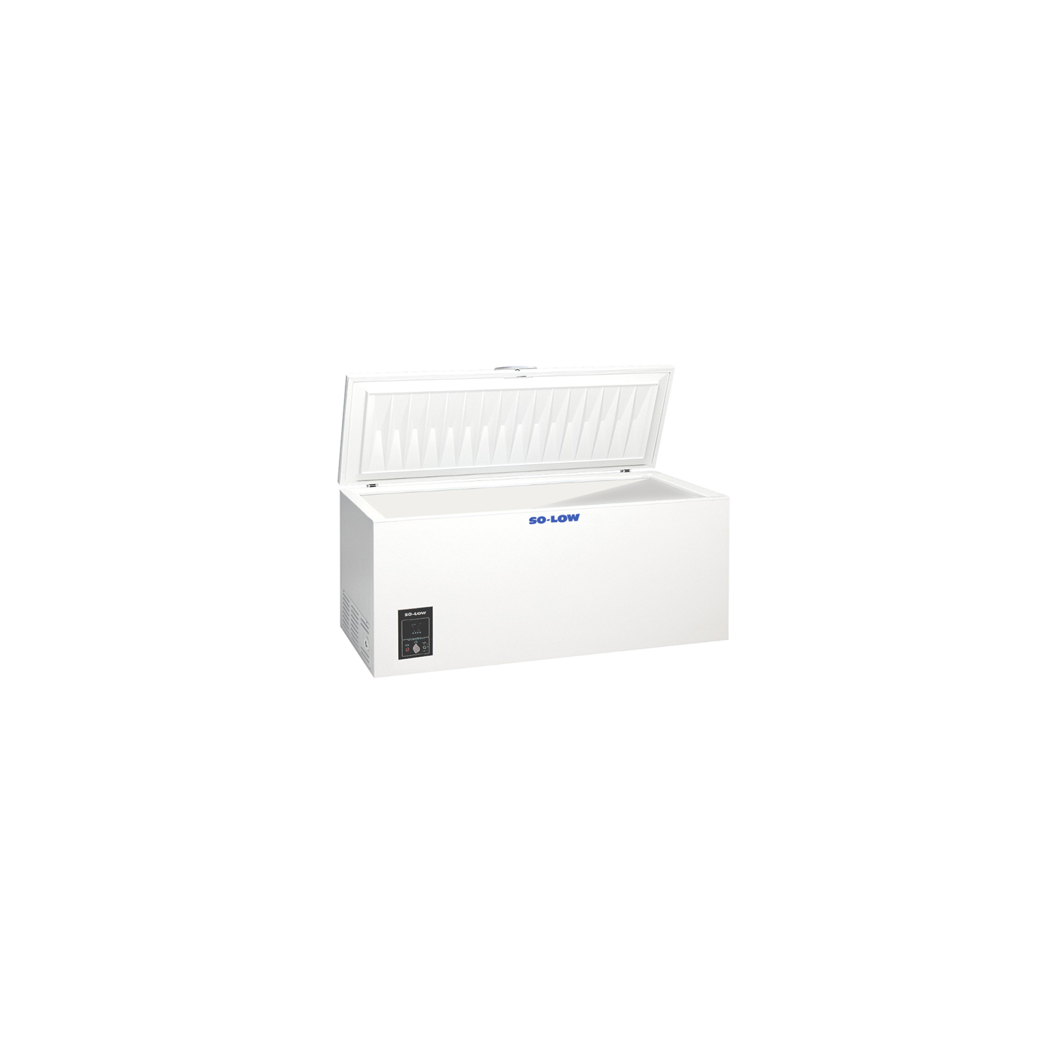 This chest-style freezer from So-Low has a hinged top with a solid door, for easy access to items stored within.