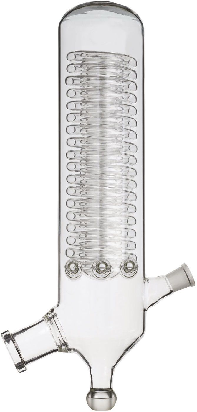 High quality glass condenser for Ai SE05 2L SolventVap series rotary evaporators. This condenser unit has specially designed glass tubes that utilize surface area extremely efficiently. Thats why our SolventVap evaporators consistently deliver reliable and reproducible process results that are usually reserved for more costly system. Condensing surface: 1,260 cm 2 or 1.4 sq ft Glass material: high borosilicate glass 3.3