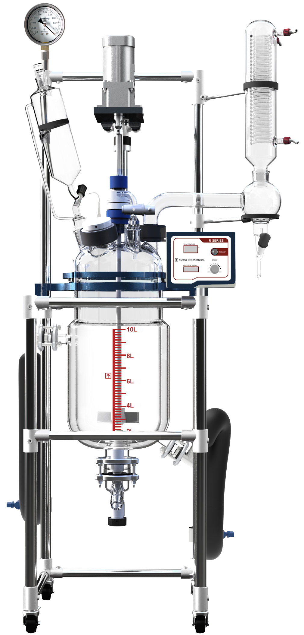 Ai R-series single/dual jacketed glass reactors are designed for synthetic reaction of different types of materials in a controlled temperature and vacuum environment. Each reactor features adjustable stirring speeds and a constant pressure feeding funnel that allows you to add material to the vessel at a uniform and controlled speed. The built-in condenser makes it possible to recover some materials, also at a controlled rate of speed.