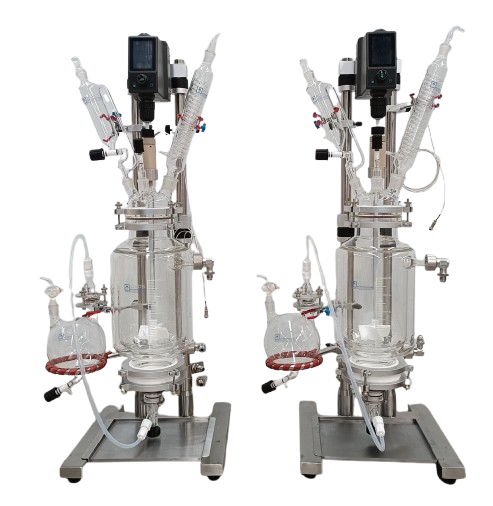 Introducing the Ai R-series single glass reactors bench top reactors. Both the 2L and 5L reactor vessels can be used on the same frame, allowing for greater flexibility and customizability. Reactors are designed for synthetic reaction of different types of materials in a controlled temperature and vacuum environment. Each reactor features adjustable stirring speeds and a constant pressure feeding funnel that allows you to add material to the vessel at a uniform and controlled speed.