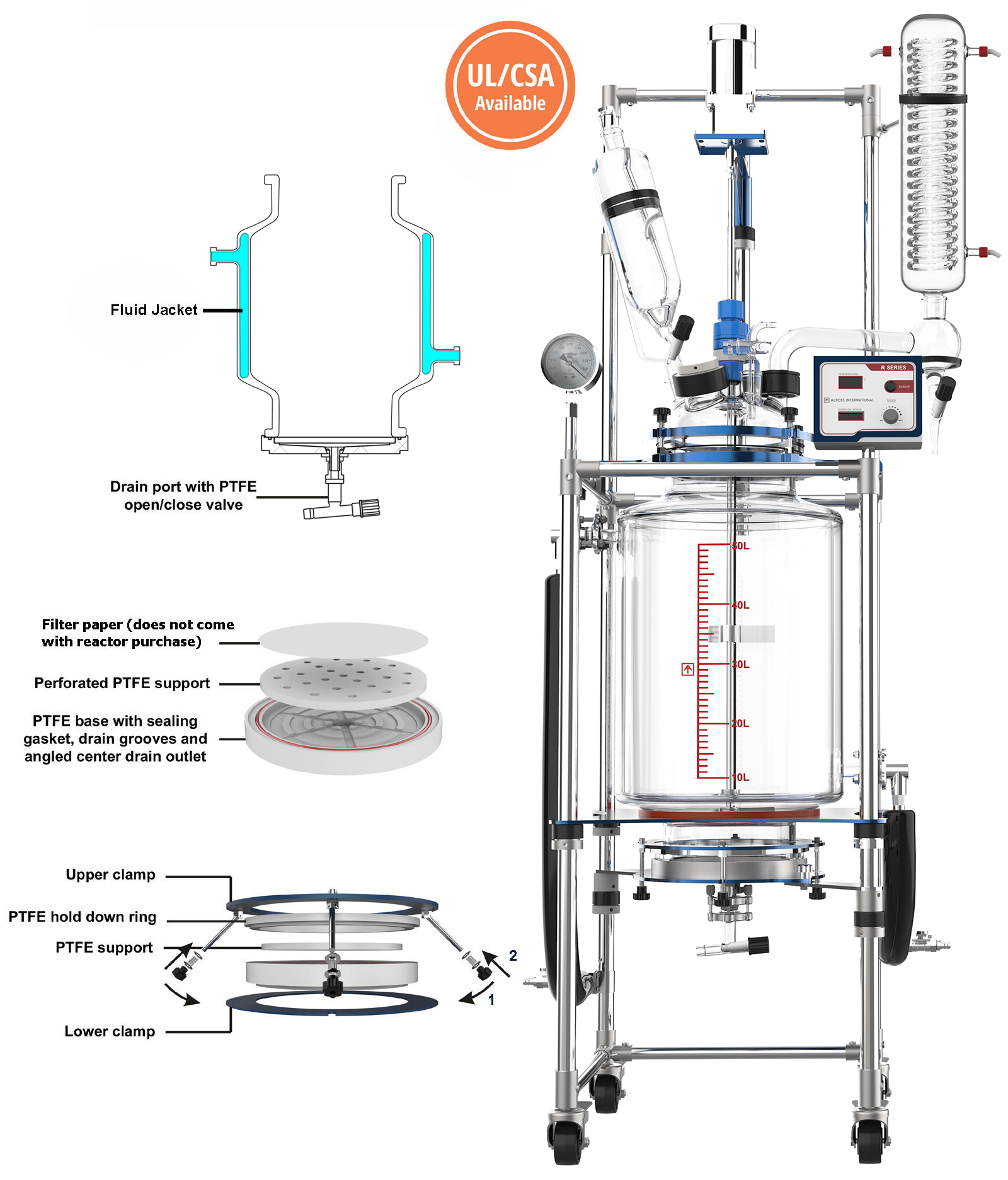 Glass Reactor Ai 50L Single or Dual Jacketed Filter