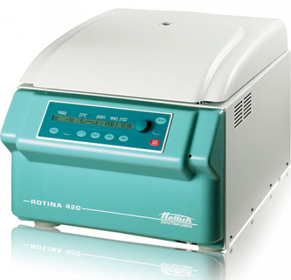 The Hettich ROTINA 420 is a high-performance benchtop centrifuge for large sample volumes, yet not overly large in size. With a maximum capacity of 4 x 600 ml, (104) blood collection tubes, (52) 15 mL conical tubes or (16) plates, the ROTINA 420 and ROTINA 420R refrigerated (-20 to +40C) centrifuges are ideal for applications in clinical chemistry, in biotechnology and in life science research facilities.