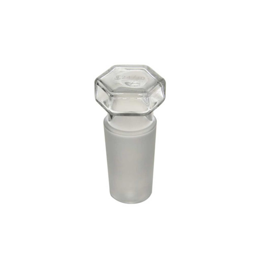 This hollow hex head stopper is made from borosilicate glass and has a 24/40 fitting with a flat hexagonal head.