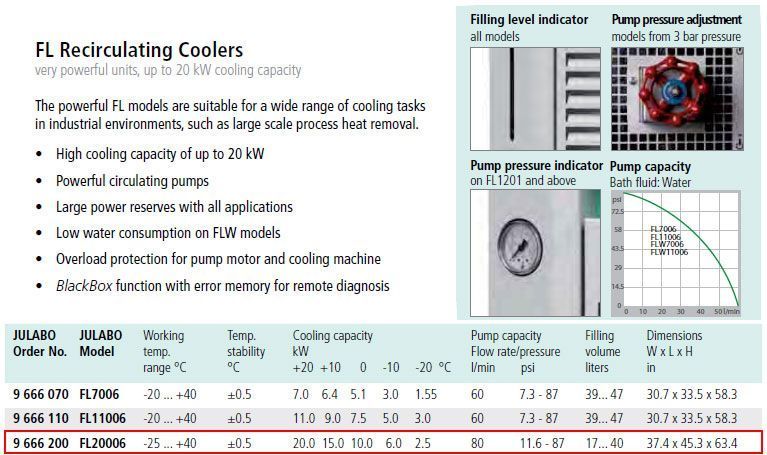 Julabo FL20006 -25°C Recirculating Chiller with 80L/Min Pump
