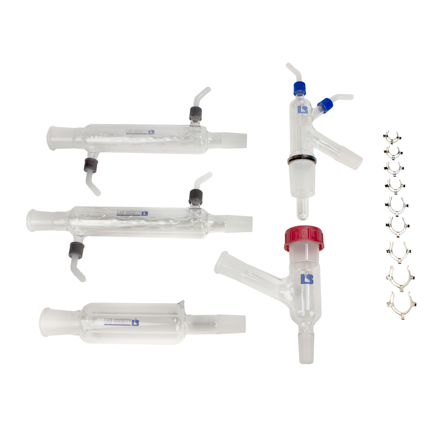 • Two (2) Allihn-style Condensers – one 24/40 top outer, 29/42 bottom inner (primary) and one 29/42 top outer, 29/42 bottom inner (secondary)