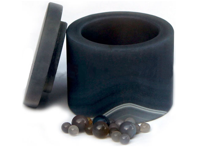 High purity natural Brazilian agate (99.91% SiO2) ball mill jars. Resistant to acids (except HF) and solvent, these jars are used whenever small quantity of samples need to be grinded without contamination. Each jar set includes grinding jar, lid, rubber sealing gasket and mixed agate grinding balls (see detail table below).