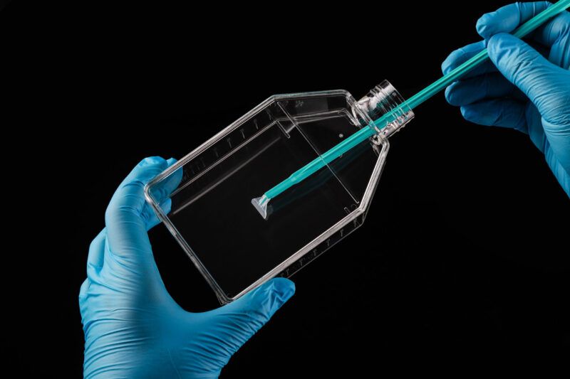 Specially designed Nest®cell scrape can be used to scrap and collect cells easily andeffectively. Pushthe handle with a slightpressure to change the blade angle.Thenpush down the handle towards the bottom of the container.