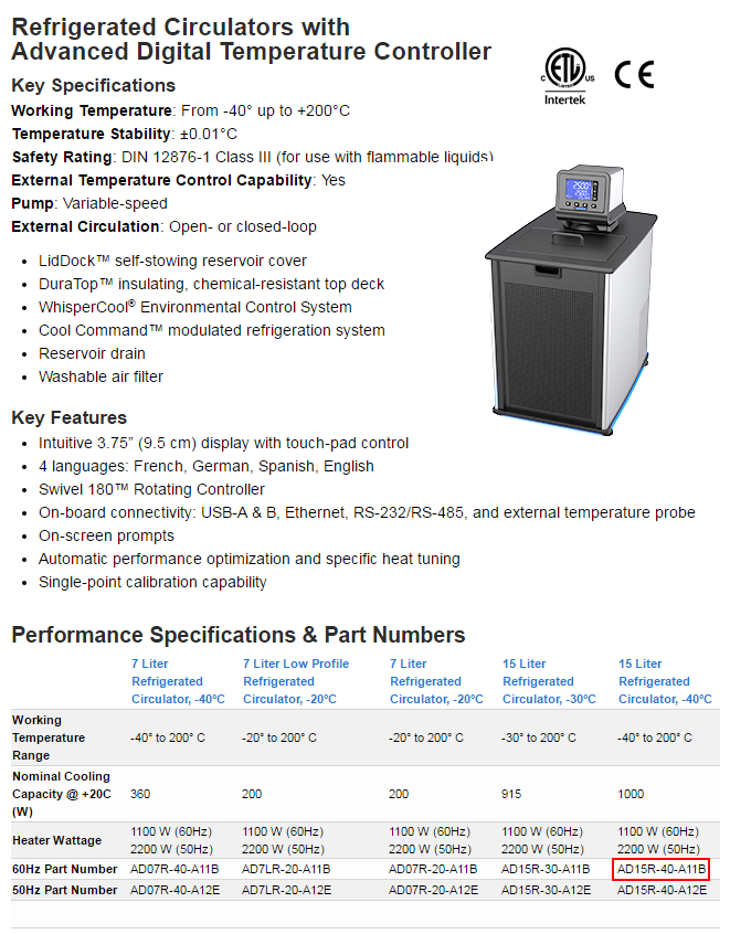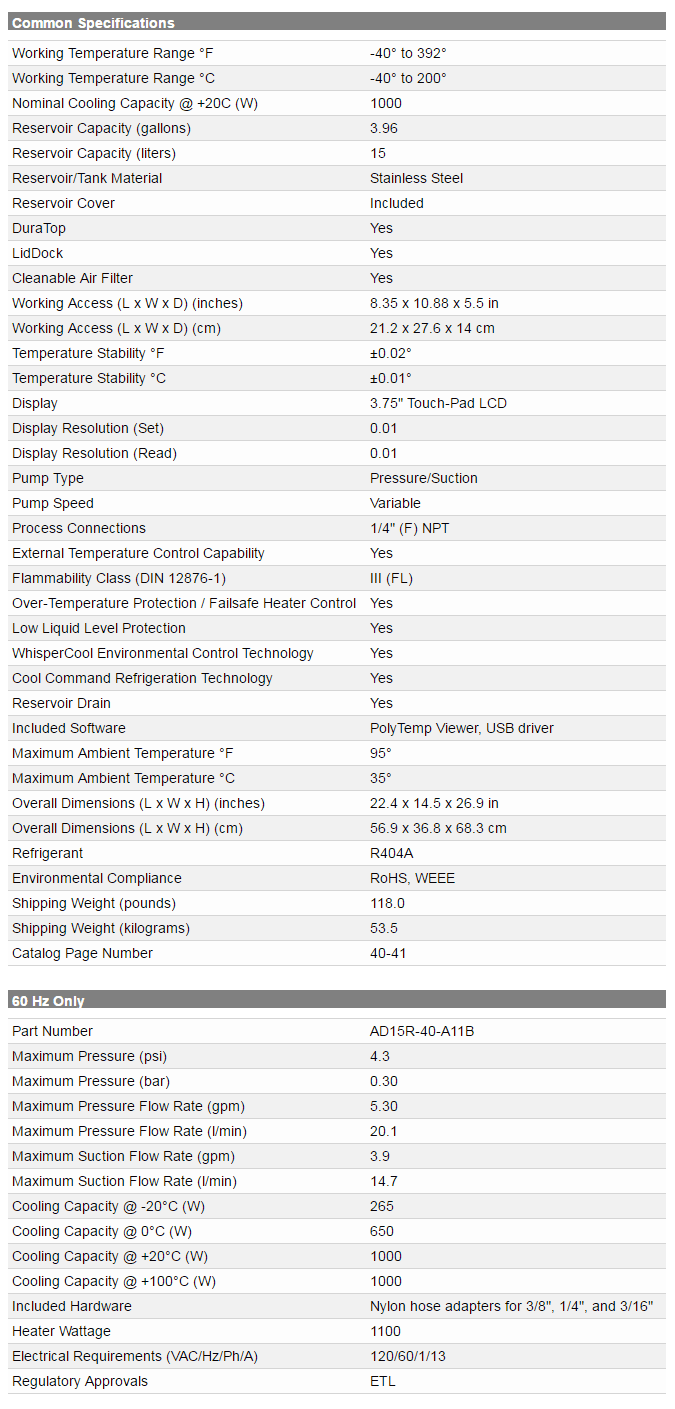 PolyScience AD -40°C to 200°C 15L Capacity Recirculating Chiller