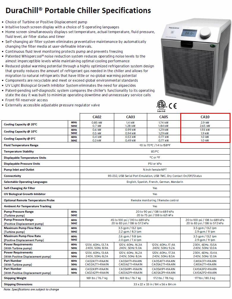 PolyScience DuraChill CA10 -10C to +70C Chiller