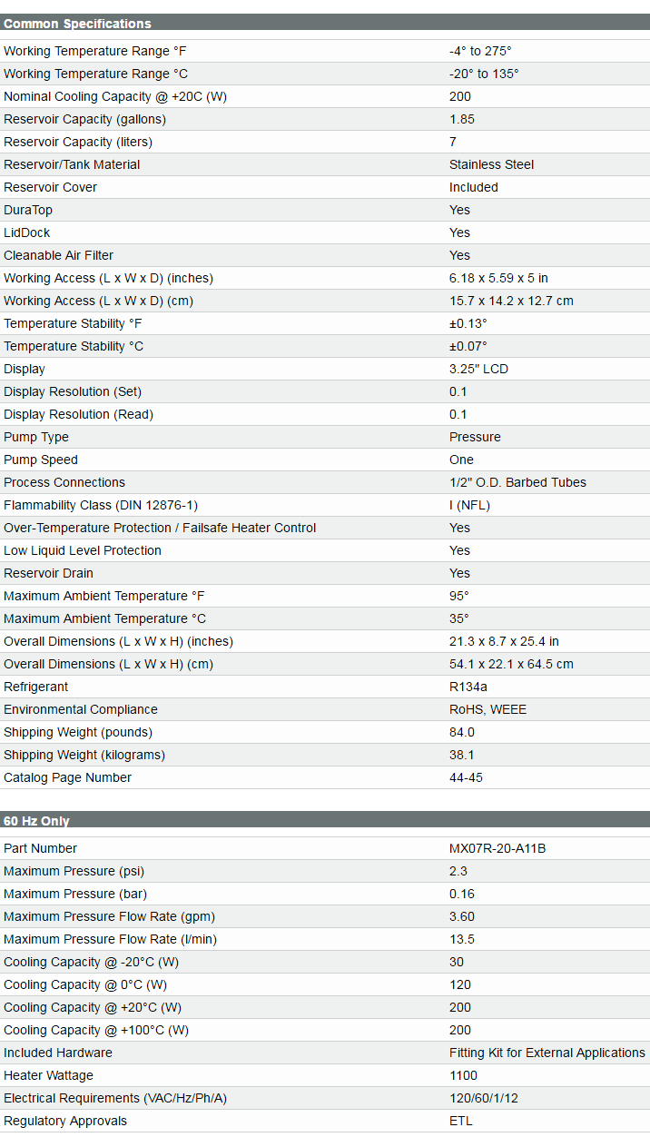 Detail specs on PolyScience’s website