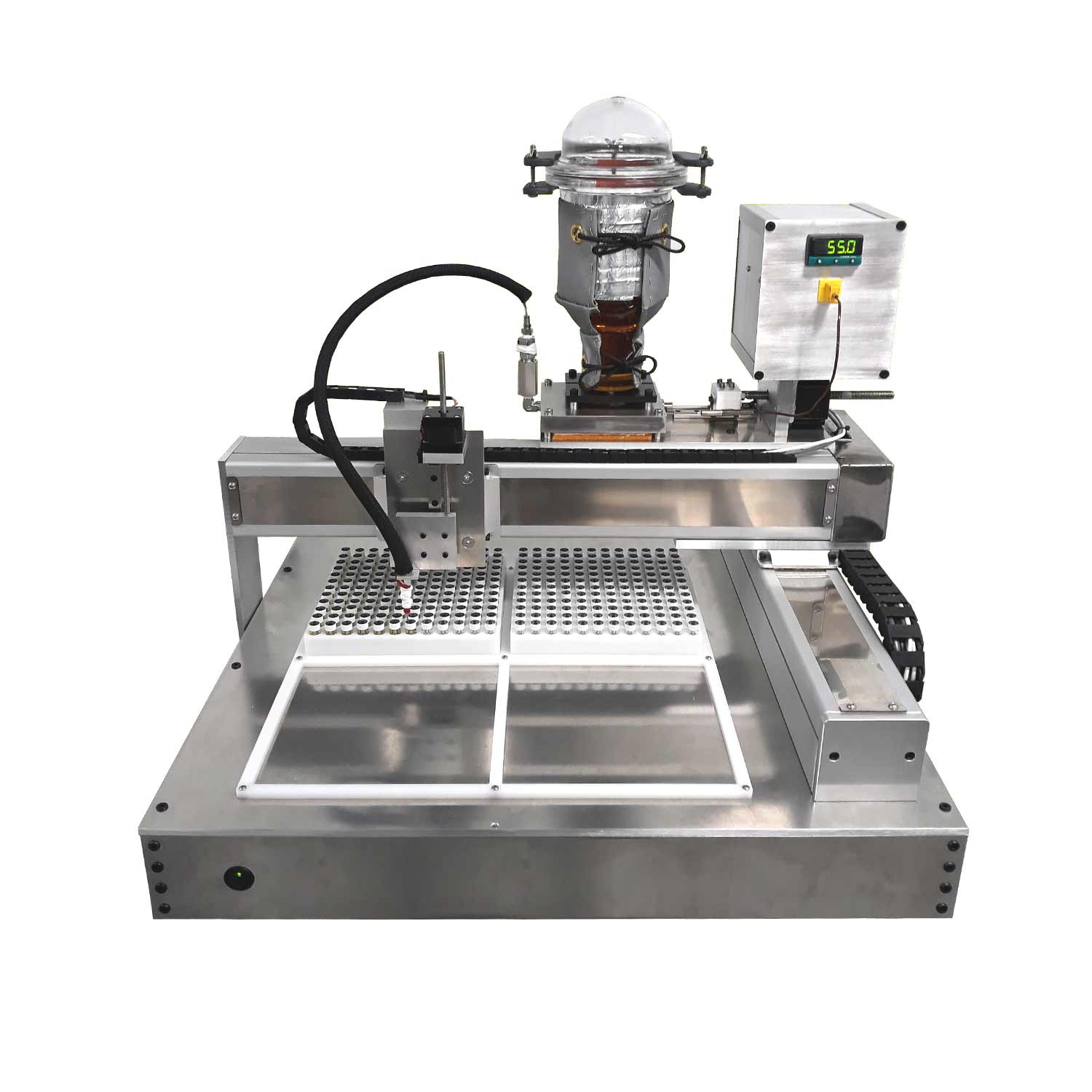 If you’ve been looking for an automated solution for filling yThe (distillate) cartridges, look no further. This robotic machine has a pump that delivers high-viscosity distillate or liquids safely and with micro-liter accuracy into the cartridges.