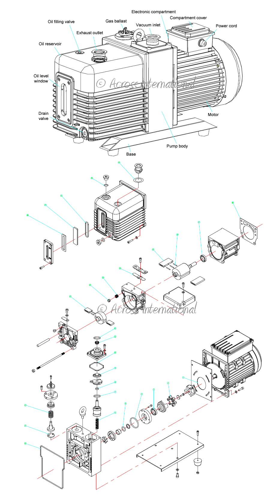 Ai SuperVac-5 dual-stage vacuum pump will take your vacuum down to 0.3 micron in minutes. These pumps are designed for reliable long time continuous operation. Comes standard with all necessary fittings and a high capacity exhaust oil mist filter which also returns trapped pump oil back to the pump and makes the pump quieter to run.